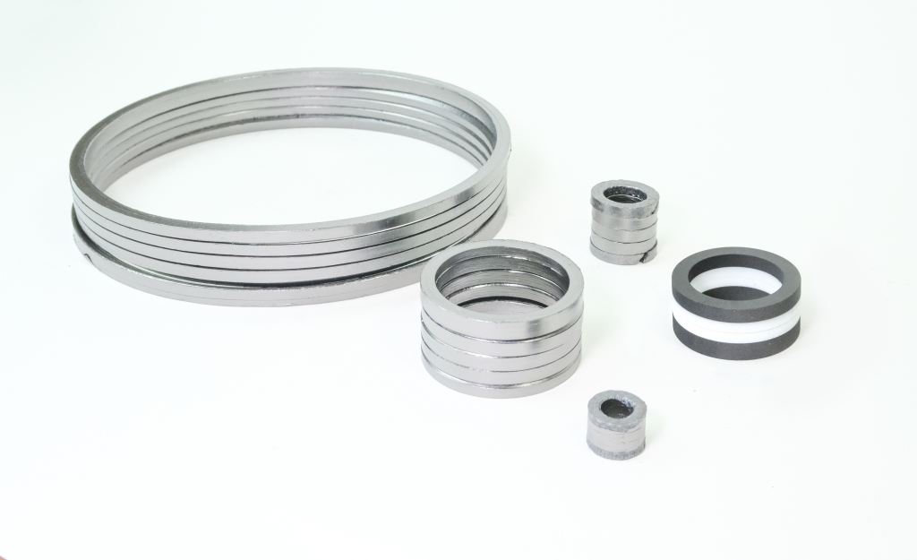Sono costituite da una striscia continua di materiale metallico con speciale profilo sagomato, accoppiato con una striscia continua di materiale per riempimento (grafite, teflon), avvolte uniformemente con tensione di avvolgimento costante, e rinforzate sul diametro interno ed esterno mediante avvolgimento di diverse spire di solo metallo e saldate elettricamente fra di loro.